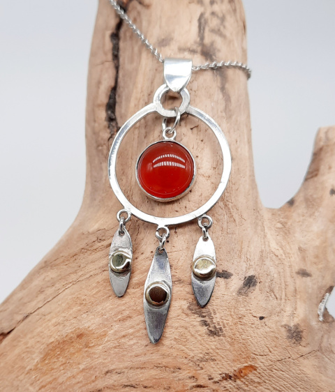 Naszyjnik „Łapacz marzeń i pięknych chwil” to wyjątkowa biżuteria, która powstała z miłości do rzemiosła i piękna natury. Wykonałam go własnoręcznie ze srebra próby 925, dodając jako centralny element czerwony agat – kamień znany z niezwykłych właściwości.